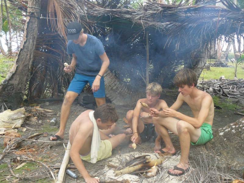 3-daagse survival op een eiland van de San Blas (Panama), vuurtje stoken, broodjes bakken, zelf vissen waaronder een lemon-haai, slapen in je hangmatje