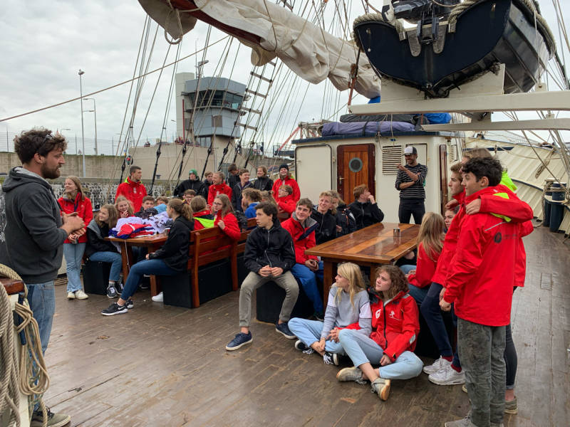 We are now 3 days en route to the Cape Verde. The exchange with the school in Tenerife was very nice. In the morning we went to their school. It is different than in the Netherlands. There was much more to do outside. They came to us in the afternoon. We had organized some activities for them. They were also allowed in the mast. In the end we had dinner together. The next day we prepared the ship for departure and worked on school. Thursday morning we left for the Cape Verde. It was super weather just no wind. We sailed so slowly that the navigation said that we would arrive somewhere in March 2020. We even swam in the middle of the sea. The wind has now increased and we are already sailing a lot faster. The expectation now is that we will release on approximately 27 November. I am now particularly busy with school.