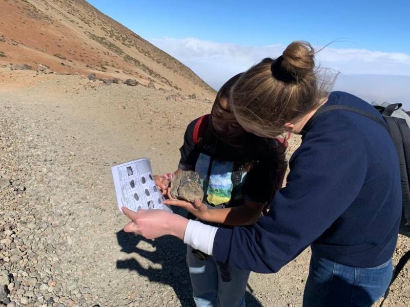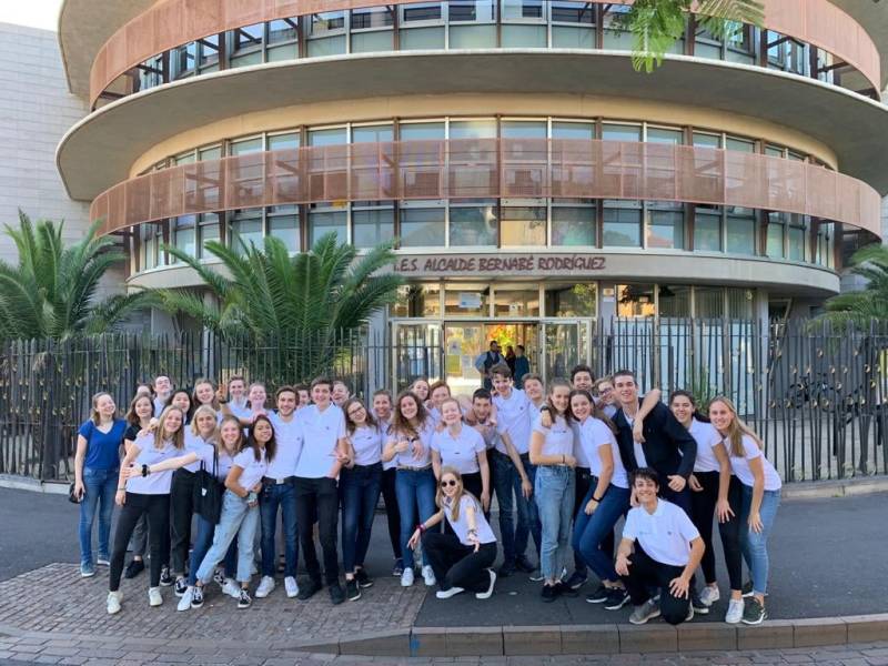 We are now in the port Of Tenerife for about 5 days. On Friday we climbed the Teide. In the morning we were pulled out of our bed at half past five and we took the bus to El Teide. We started in the huge crater and from there we climbed the Teide itself. It took a little less than 6 hours to get to the top. The view was really super! The descent took 2/3 hours. The next day we gave the first party. The theme was 'Beach'. It was very nice and we went on until late. Fortunately we were allowed to sleep a little longer the next day, but we just went to school after that. Tuesday we have an exchange with a school here in Tenerife.