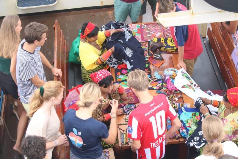 Bij het inklaren kwamen er indianen aan boord om hun spulletjes te verkopen